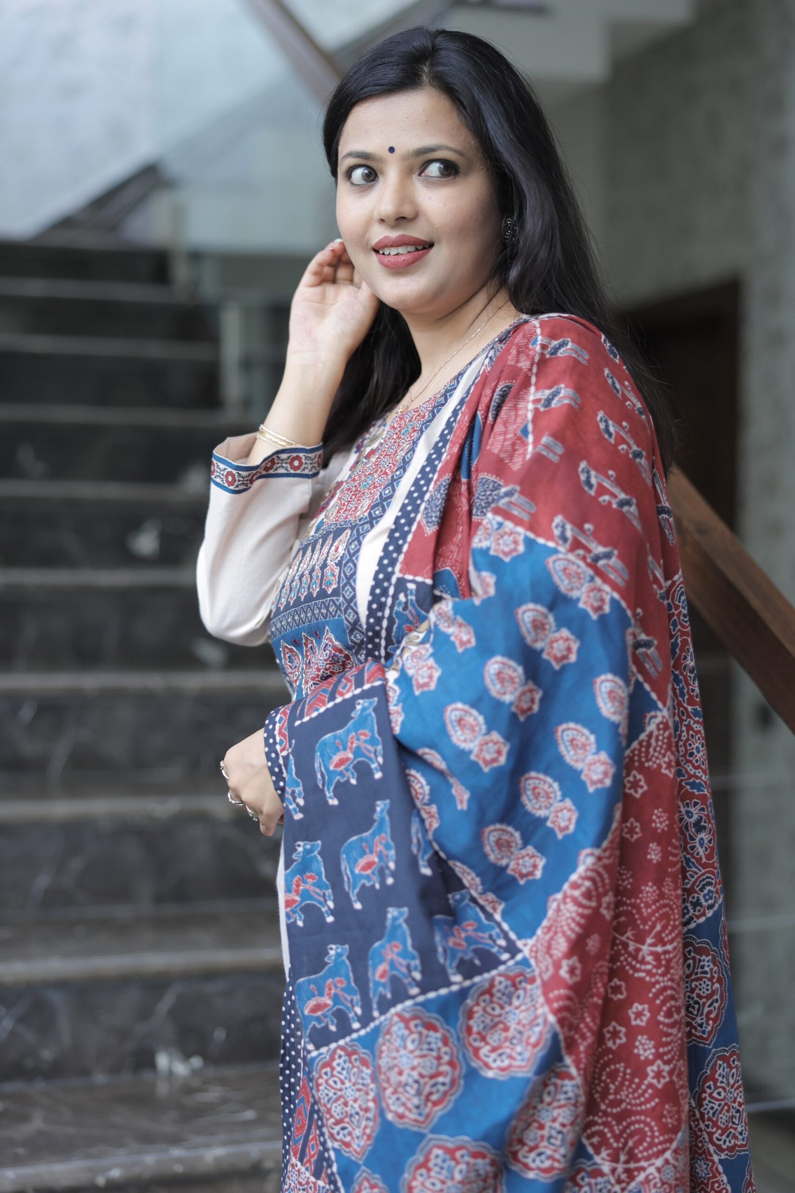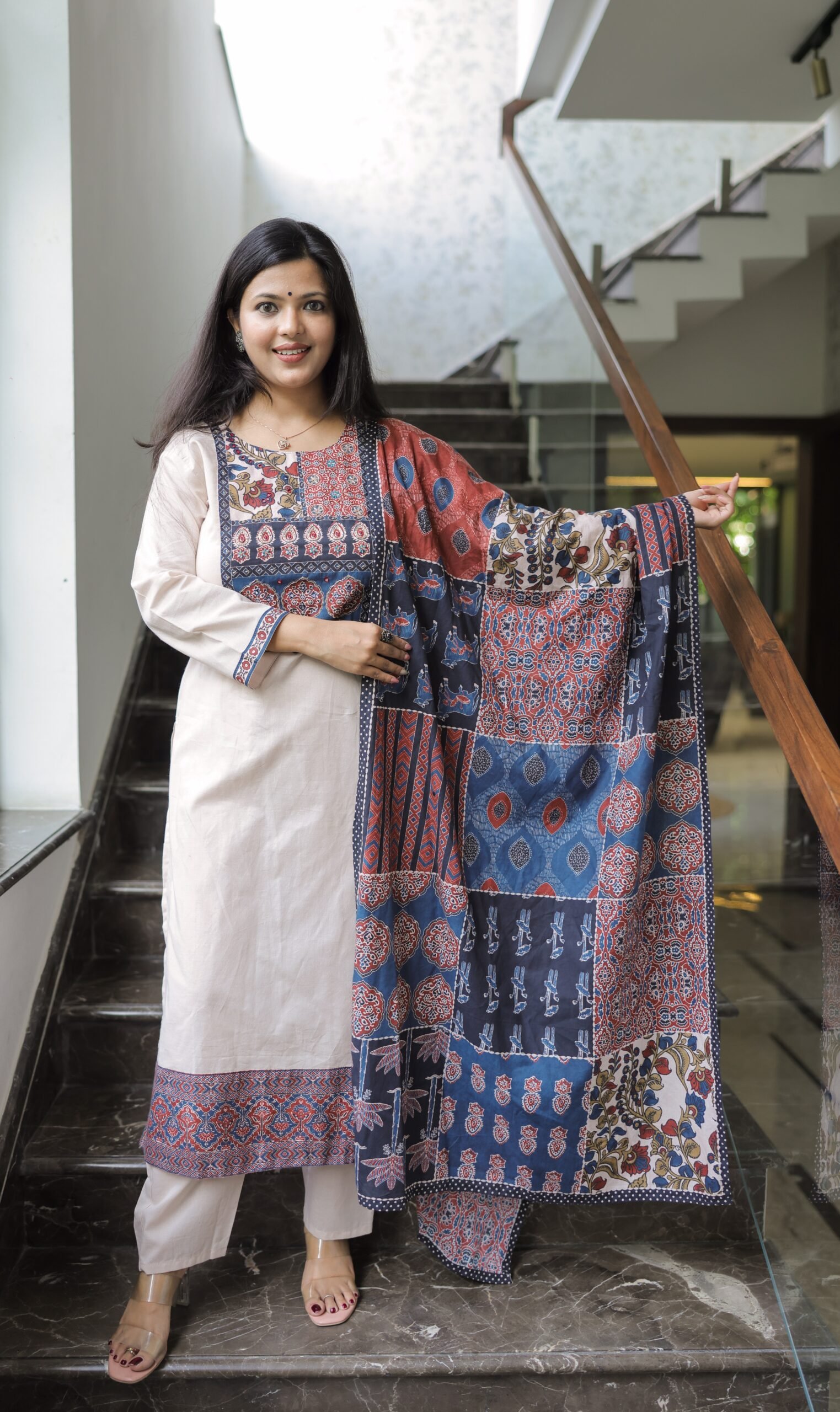 Beige Cotton ajrakh suit