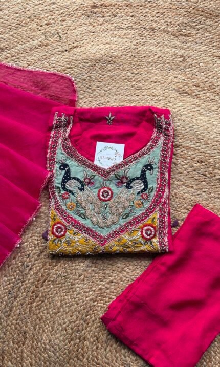 Pink Hand embroidered suit