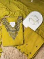 Applique Lime Yellow Mul chanderi suit