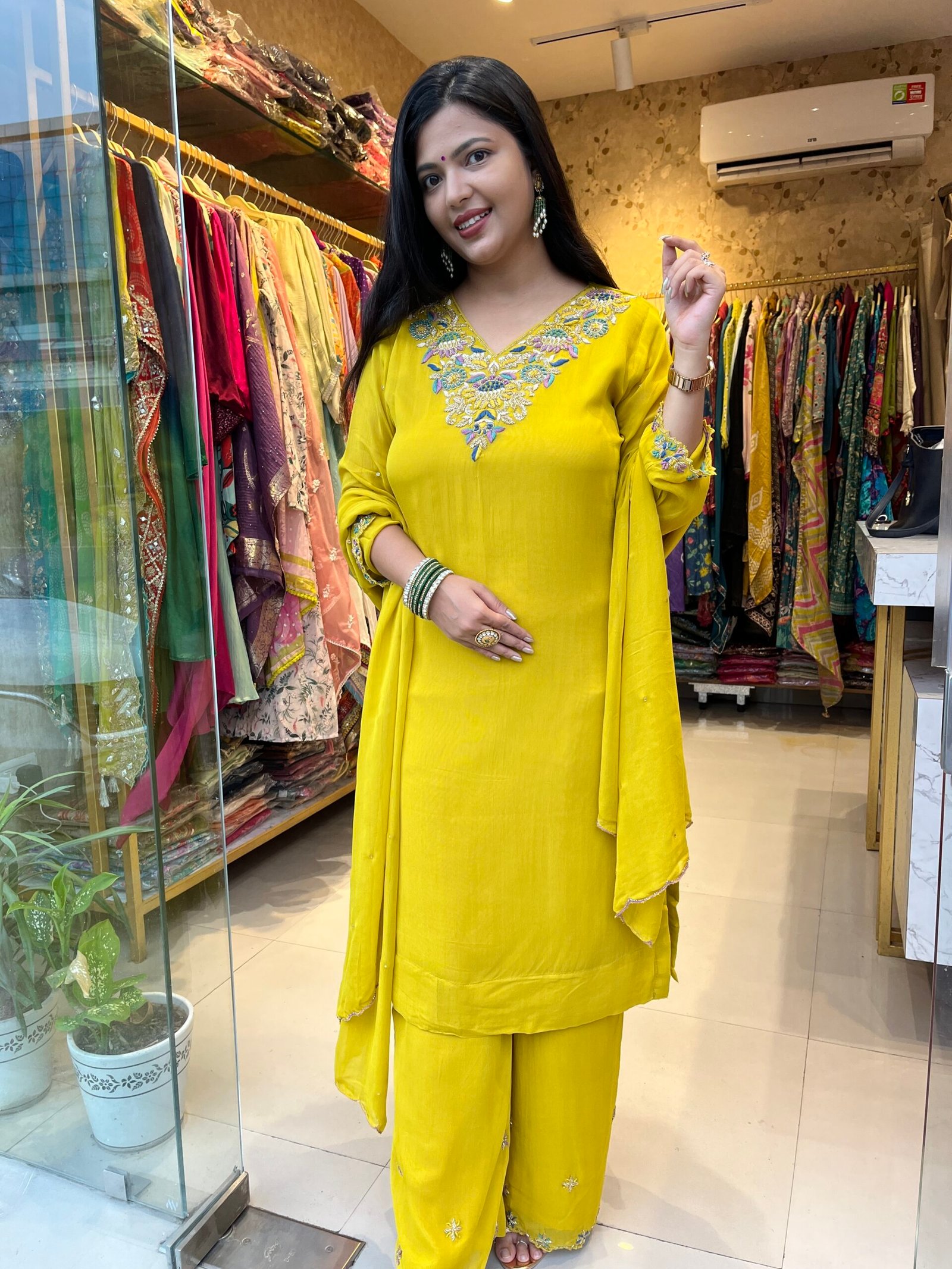 Lemon Yellow embroidered suit