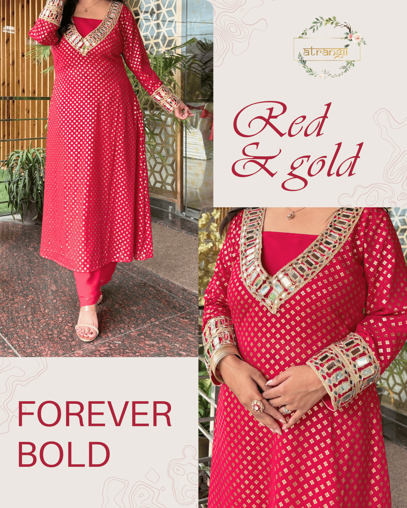 Be the first to review “Red & golden Mirror kurta set” Cancel reply